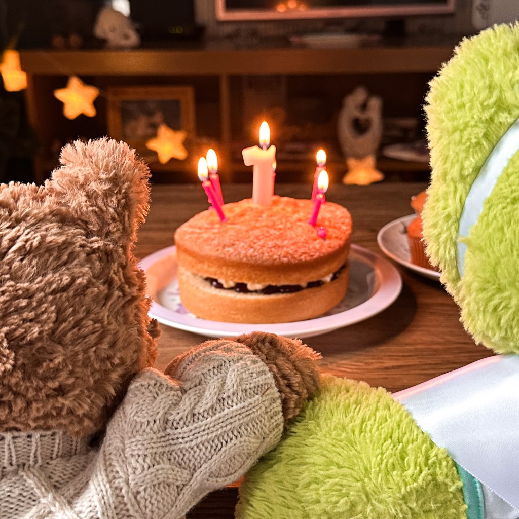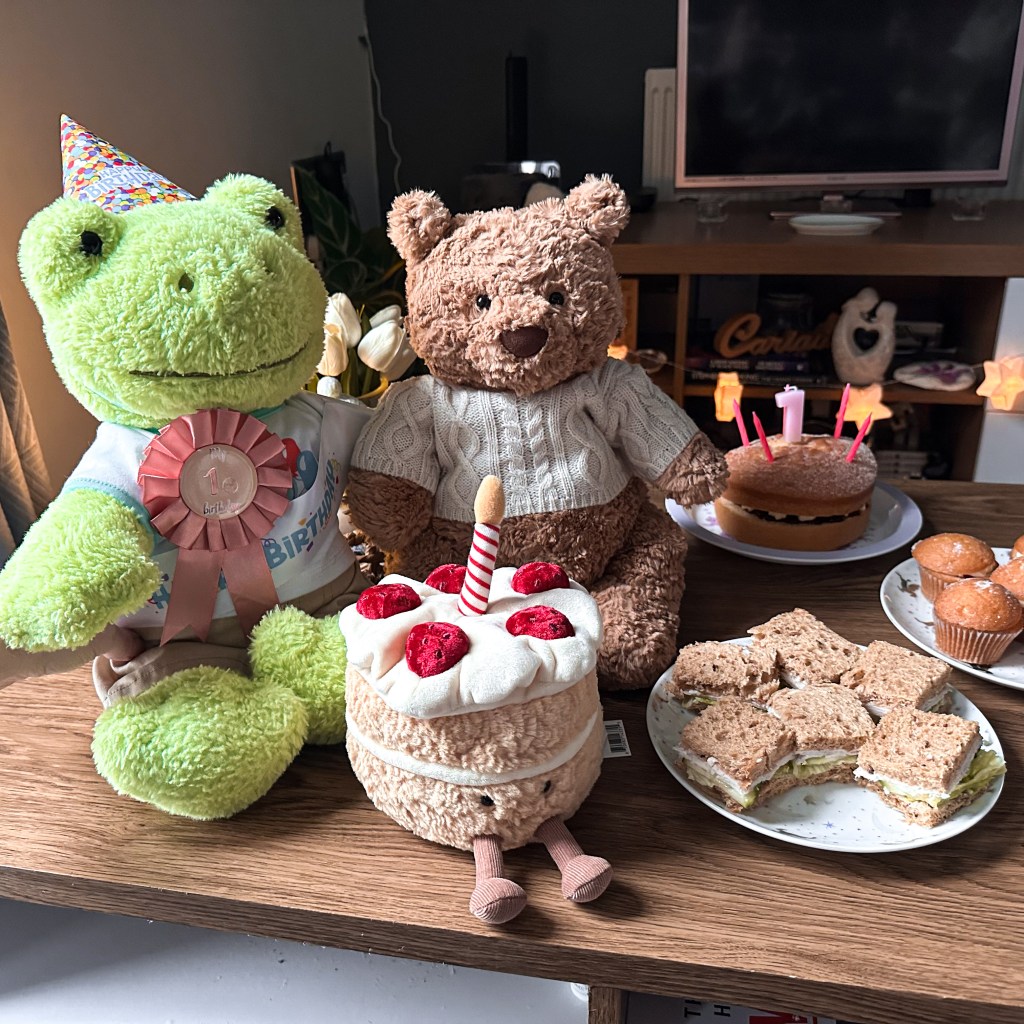 On Wednesday, we had a birthday party for Frankie Frog, my son’s Build-a-Bear plushie. He turned one year old, and we celebrated with cake, sandwiches, and even Froggy wine — non-alcoholic, of course, because froggies are already REALLY bouncy.