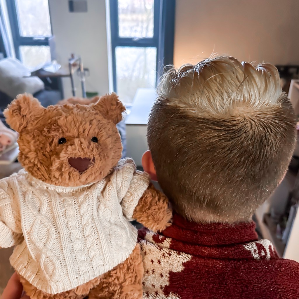 I have so many Jellycats that represent special people in my life, and I didn’t have one to represent my son. I thought Fergus Frog Little would have been the one, but his vibes were all wrong. He’s a grumpy little fellow, and I love him for it, but that is not my son.