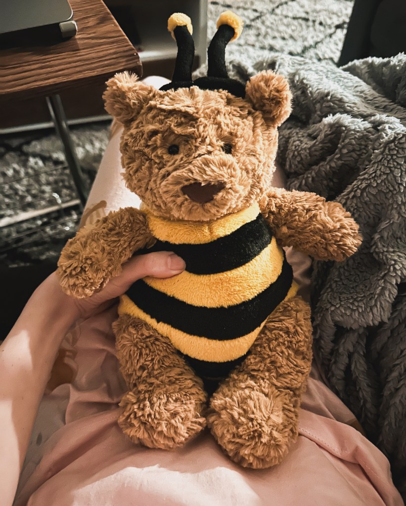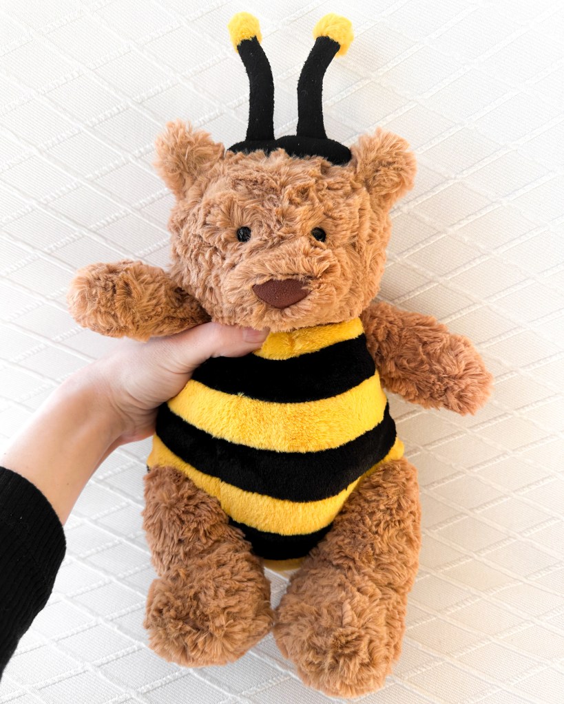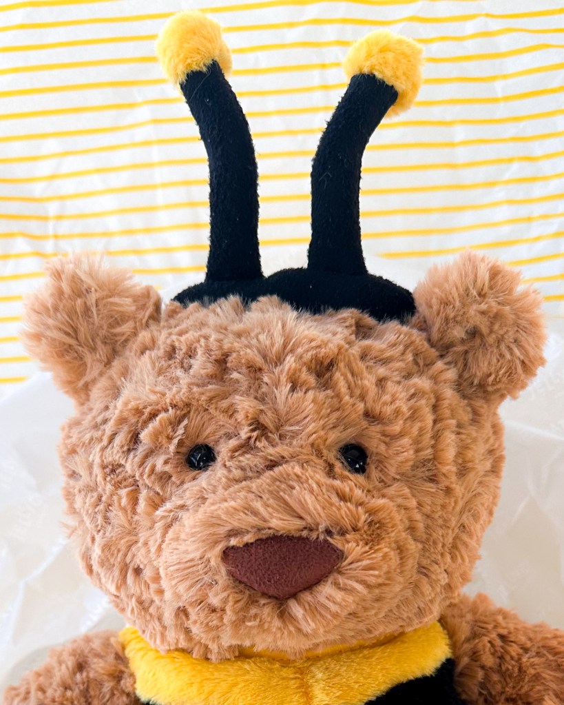 Inside was an ADORABLE Jellycat Bartholomew Bear Bumblebee.