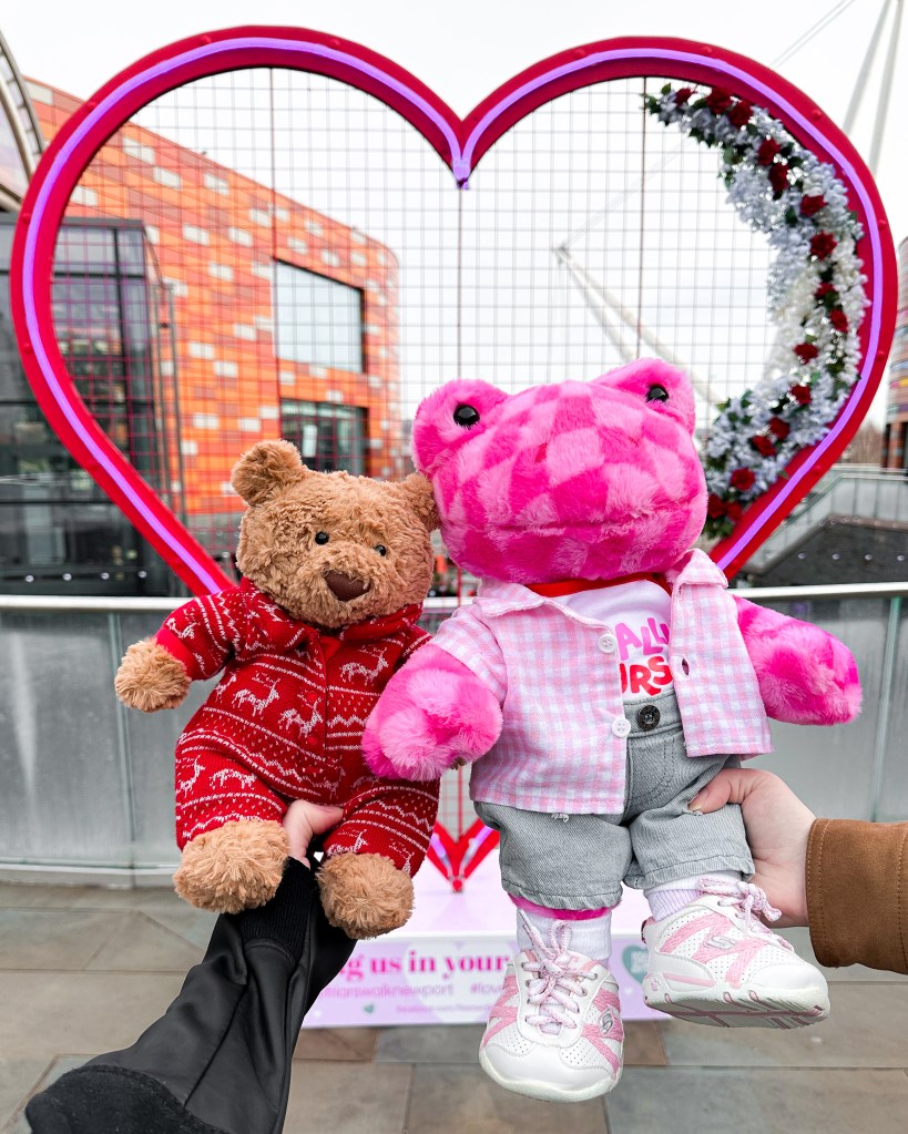 Right outside, there was a Valentine’s Day selfie prop heart, set up for cheesy couples’ photos. So naturally, I had to take photos of my bear with it. This is probably the most asexual thing I have ever done. My son joined me with Harrie, his pink frog, and we smiled together taking the photos.
