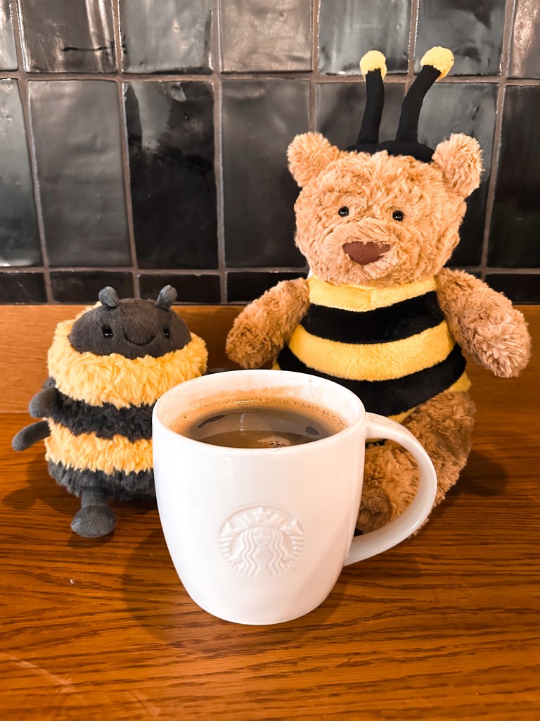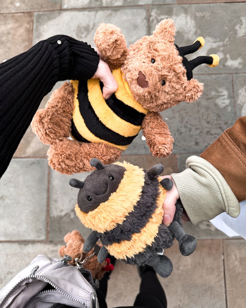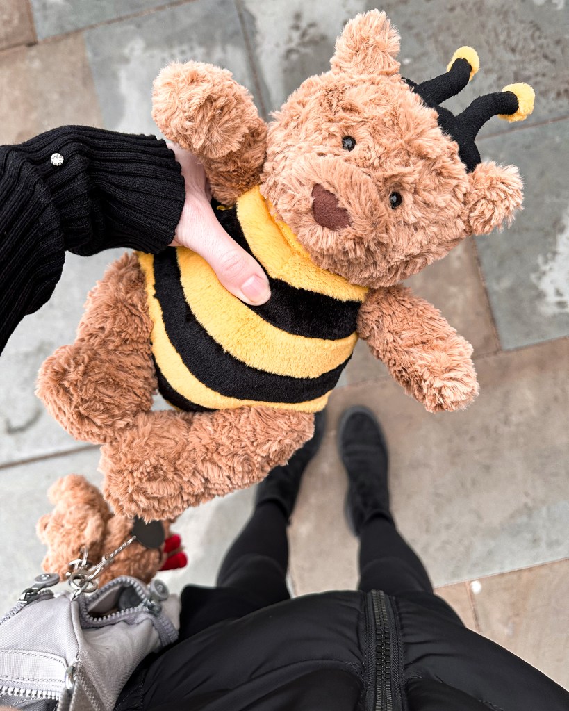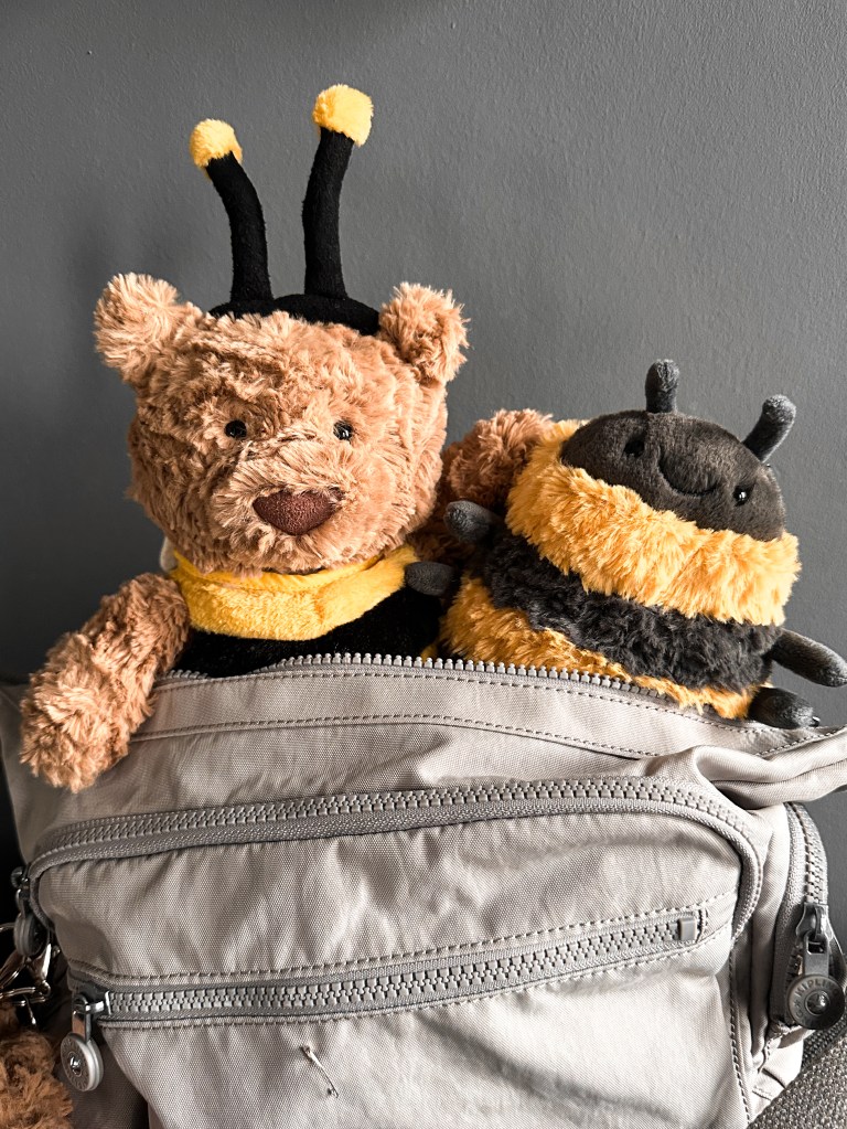 We placed our plushies on the table and took really cute photos. My son had let me borrow his Jellycat bee, Beethan, so I could take him to my appointment, since my son couldn’t come. The night before, he handed him to me and said, “So I’ll be with you in bee form.” He’s so ADORABLE. I really love the Jellycat bee — Beethan and my bee, Buzz, are best friends.