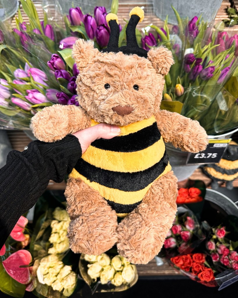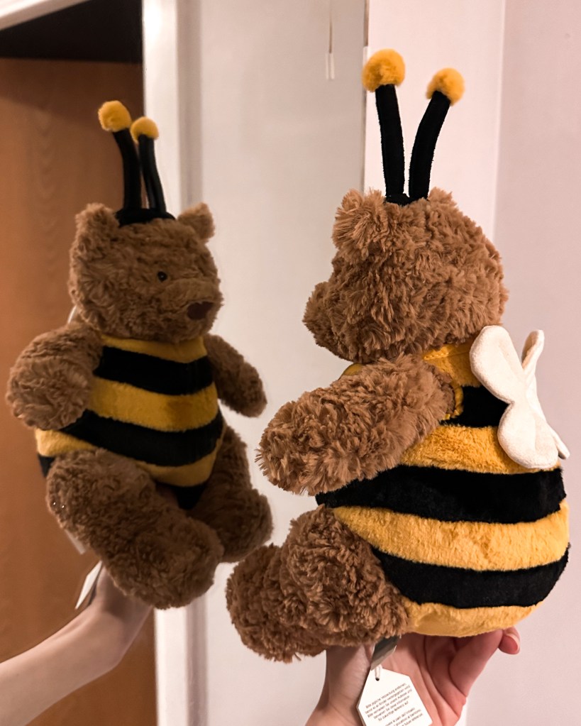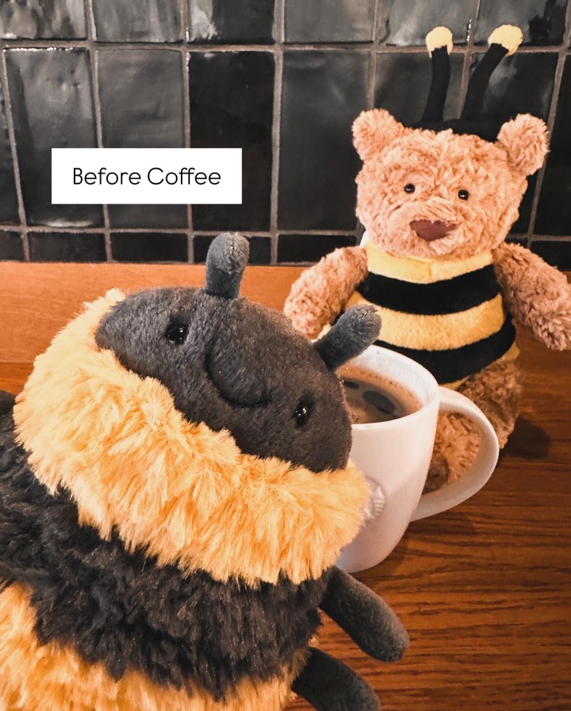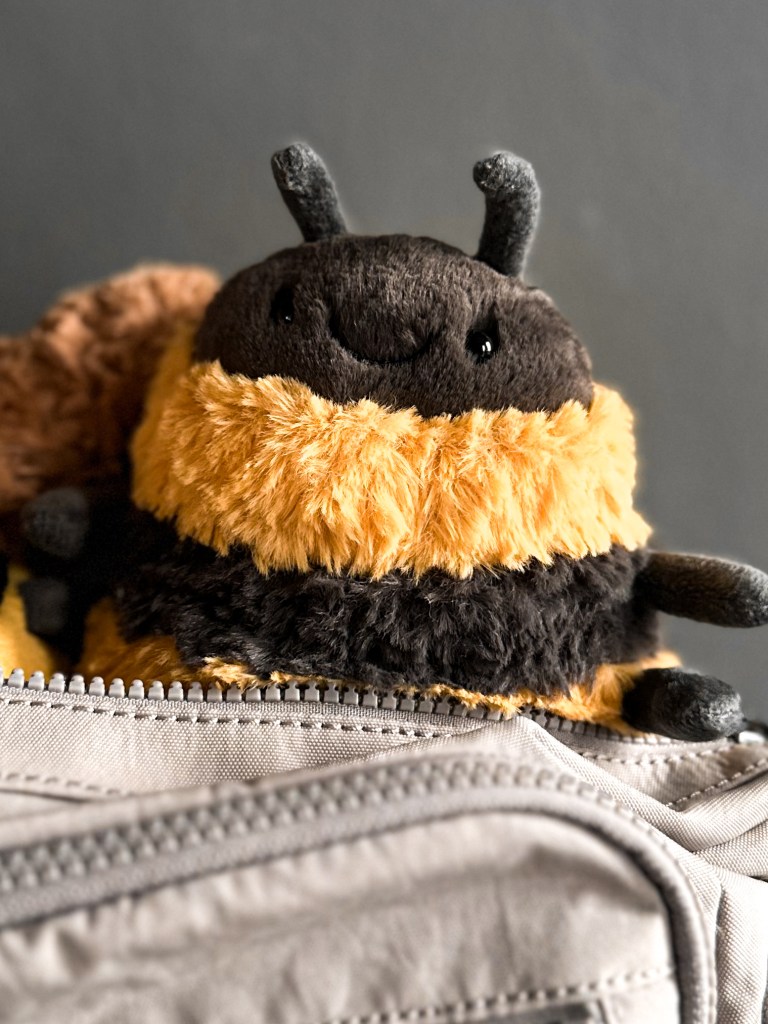 We placed our plushies on the table and took really cute photos. My son had let me borrow his Jellycat bee, Beethan, so I could take him to my appointment, since my son couldn’t come. The night before, he handed him to me and said, “So I’ll be with you in bee form.” He’s so ADORABLE. I really love the Jellycat bee — Beethan and my bee, Buzz, are best friends.