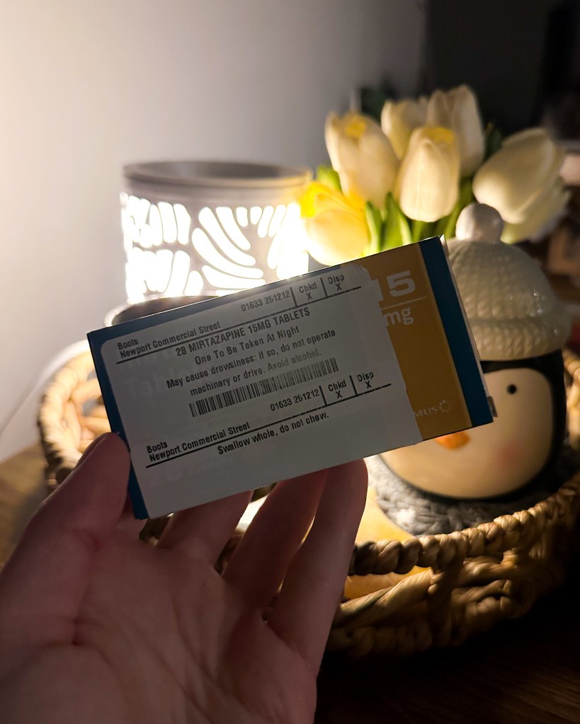 I’ve been on Quetiapine for 14 years, and, well, it hasn’t stopped me from relapsing, but Mirtazapine feels different — scarier. Maybe because every time I say I’m struggling with my eating disorder, I seem to be automatically prescribed it. And Corrupted Clippy — my eating disorder thoughts — finds this very SUS and would like to yeet Mirtazapine out of the airlock immediately.