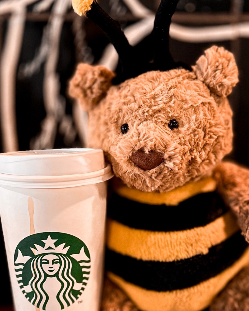 I threw on the only outfit that fits me and did my best to make my hair look less like a 90s troll doll and more like a passable human disguise. Then, after grabbing my Jellycat bartholomew bee bear to take with me, we left. I made sure not to eat anything at all after Tuesday’s absolute disaster (if you know, you know), I wasn’t about to make that mistake again.