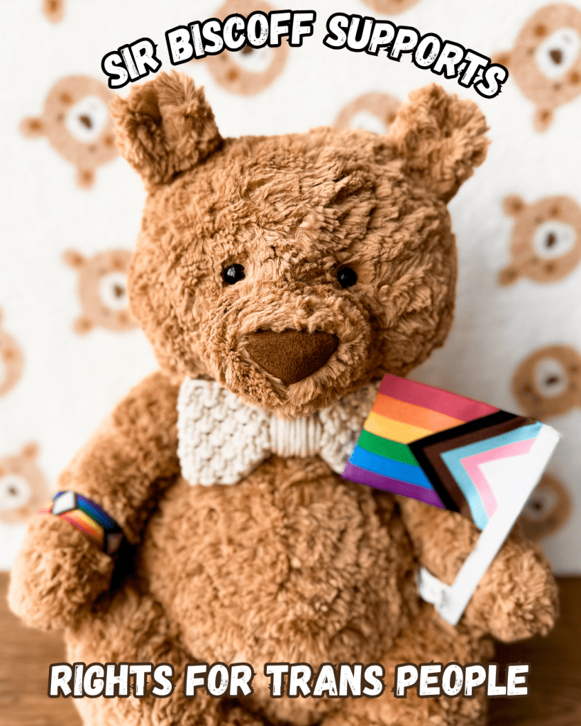 2 thoughts on “Good Friday – The Battle, Biscoff the Bear Becomes a Trans Ally, and the Bit of Joy I Clawed Out Anyway