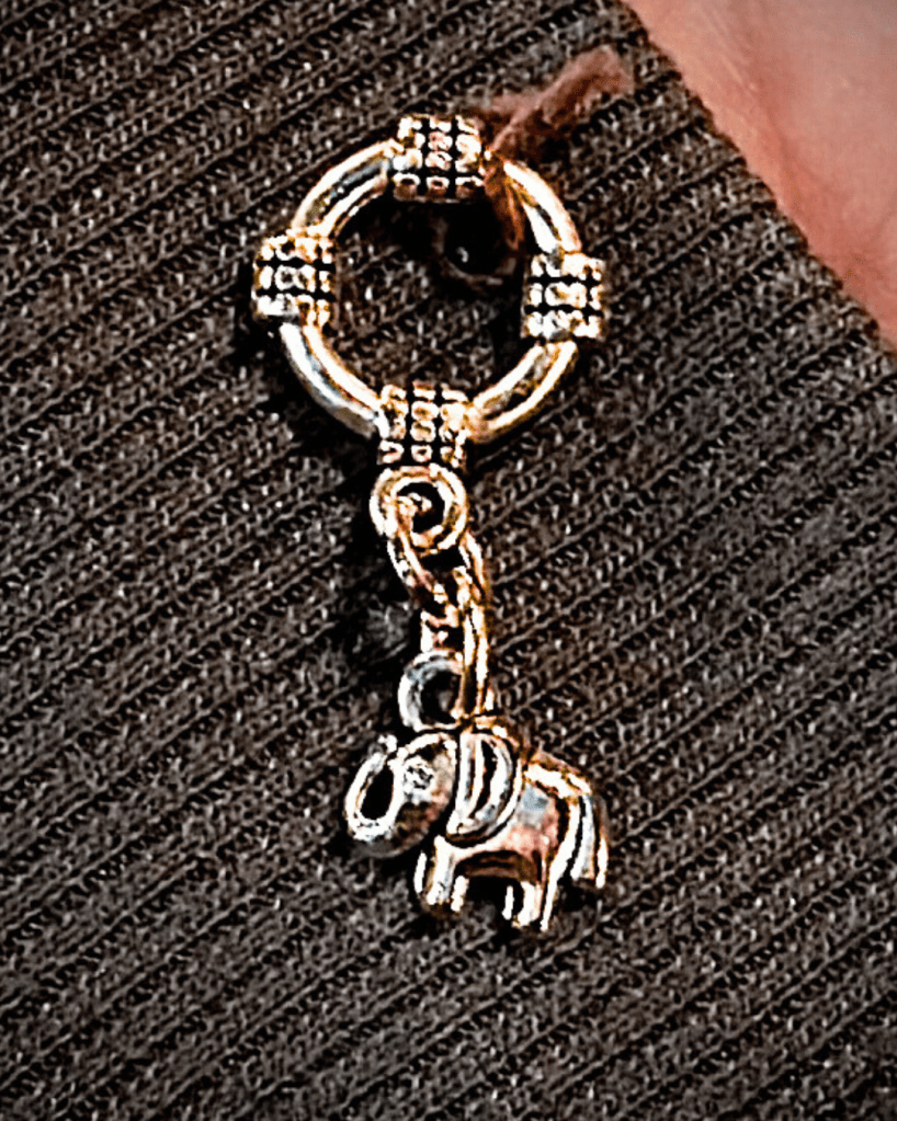 As I was walking along the pavement, I saw a glimmer directly in my path. It was shining out to me like a star in the night sky. I knew I had to see what it was. I knelt down – and it was a little charm. I picked it up, and a tiny silver elephant revealed itself in my hand.