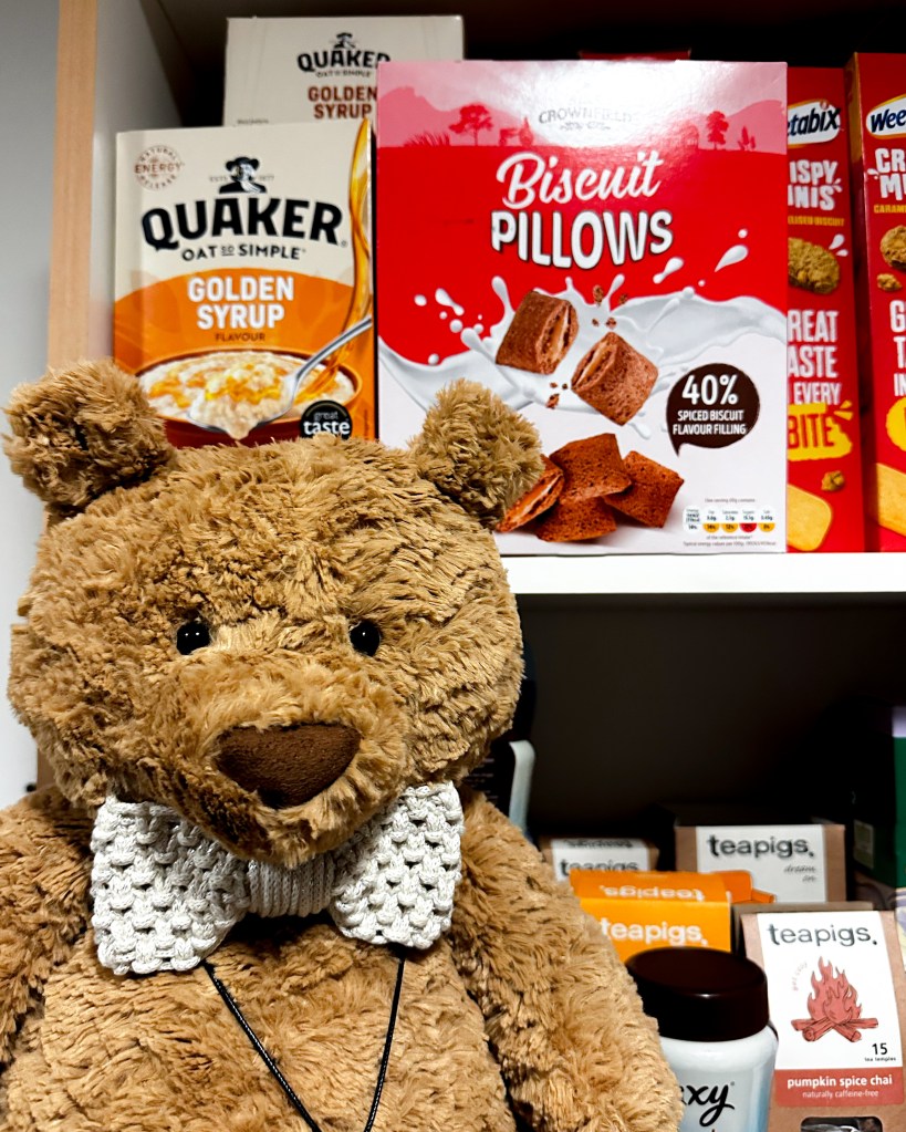 Thankfully, the bravery didn’t start to leave until after the bakery section, where I found Biscoff croissants. That was an absolute yes from me – and from Biscoff the bear. He will love that. Maybe a part of me is still standing there in the bakery aisle, daydreaming about Biscoff croissants, because that’s where the excitement stopped.