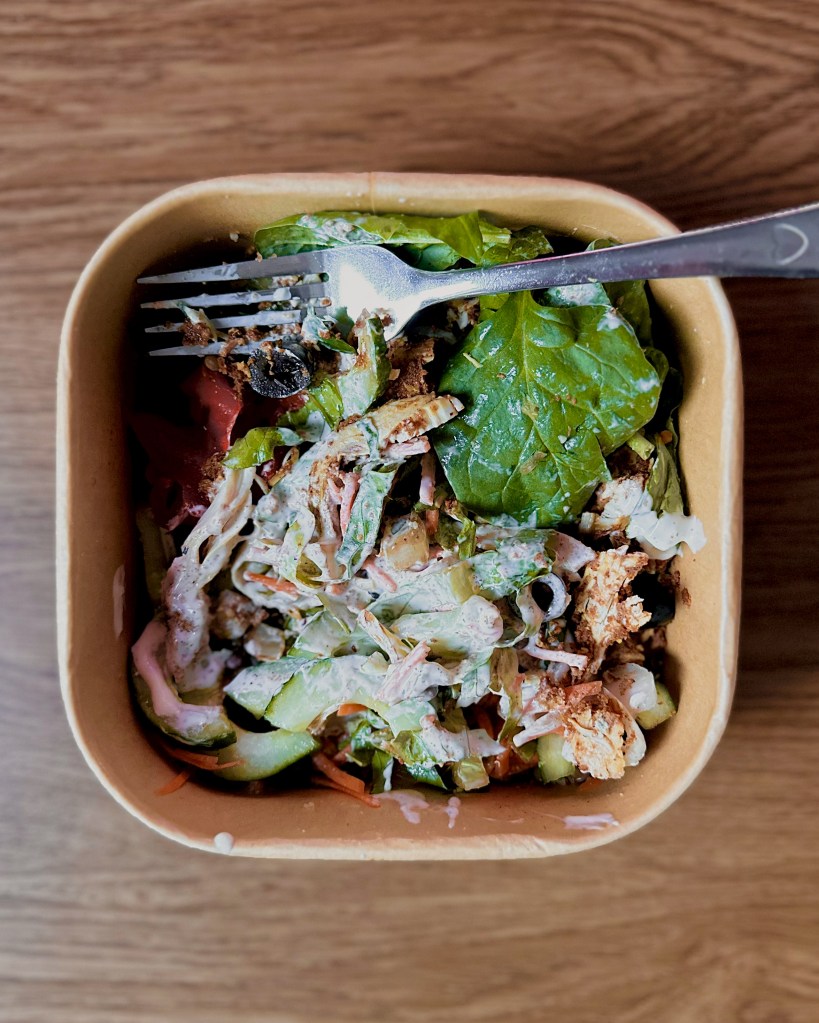 Of course, this isn’t all I’ve eaten today. I can’t eat before doing anything physical because my digestive system loses its mind — so on days like this, Greggs becomes breakfast, the salad is lunch, and I still have dinner and dessert ahead. I’ll share more about what I’ve been challenging and how it’s going in a food wins post soon.
