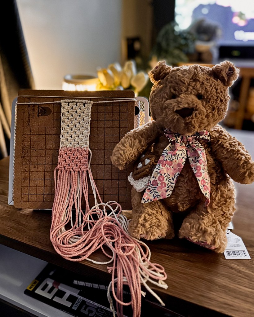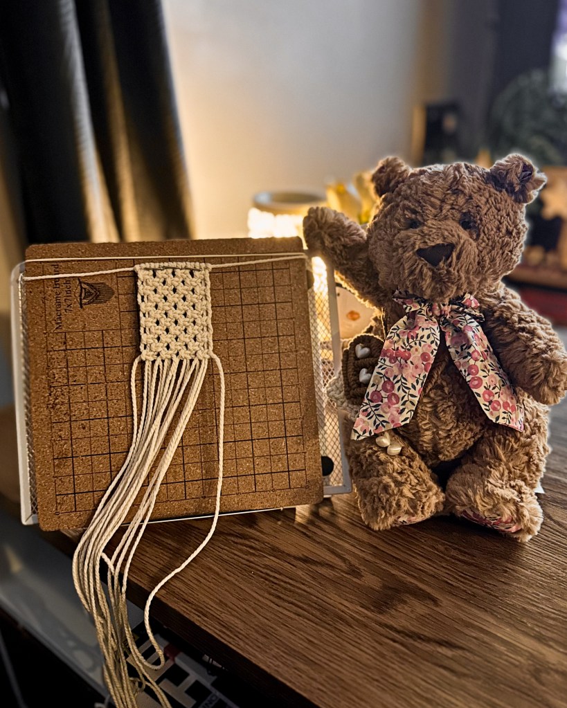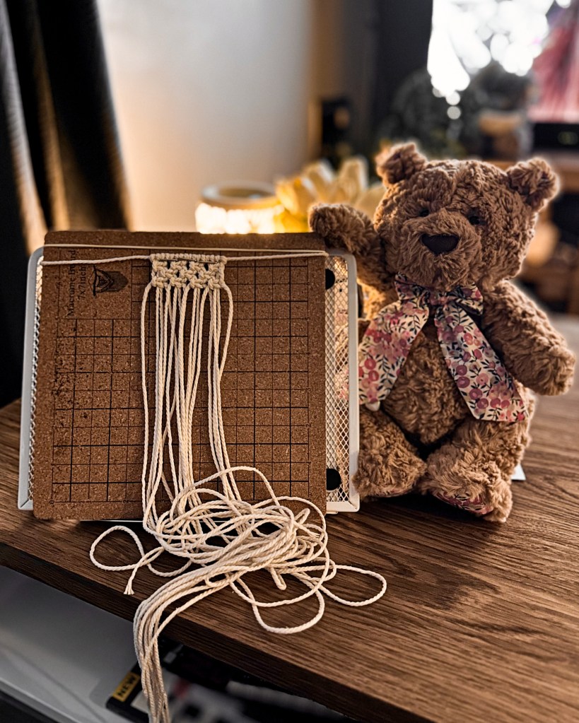 Despite all that, I’m making macrame for my Jellycat bear. Hoping that knotting something together will help with the feelings of everything unravelling.