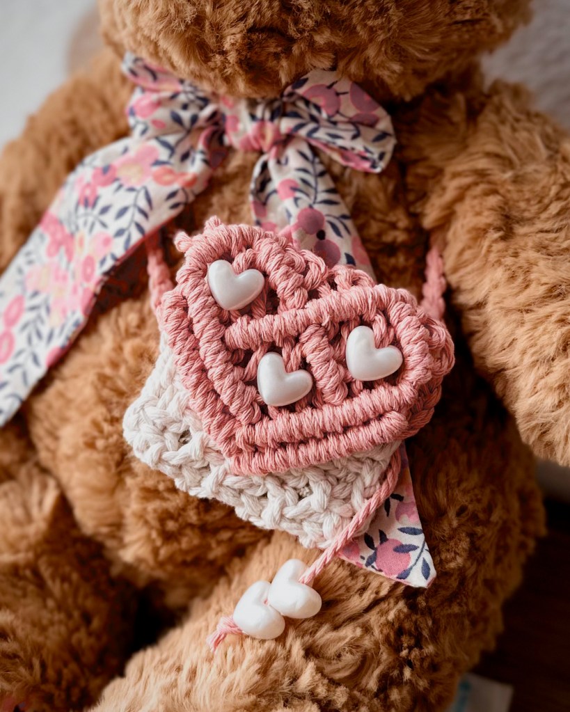 I’m feeling like I’m unravelling. But while unravelling, I made a cute macrame bag for my bear. It’s adorable. And I managed to create something soft and sweet despite wanting to undo every bit of recovery I’ve worked for.