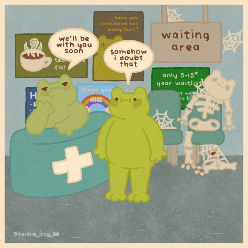 I’m still wondering how she ended up in this nothing city in Wales. She came all this way and got NHS dystopia instead of mountains. I had to talk to her. I needed her to know that even if Wales is struggling, Welsh people are warm. Even in minor injuries. Even when we’re worried about our sons foot.