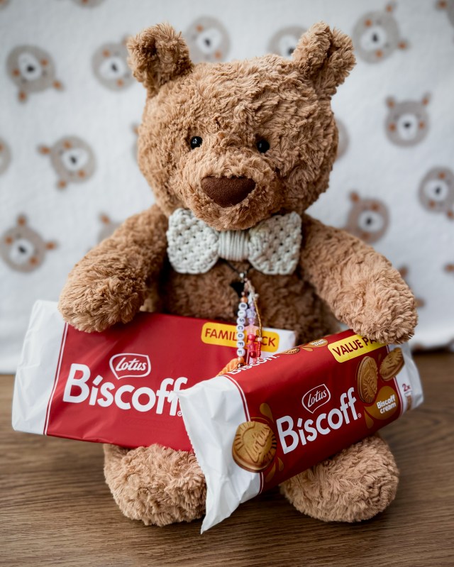 Although nervous still, I’m excited to try more. I’ve already got a little Biscoff mountain forming (including Biscoff Milkybar from Australia, which is on its way). And yes, I will absolutely keep reviewing it with my calorie-fearful, chaos-goblin palate – and the help of my son and Biscoff the Bear, who is now an official famous food critic.