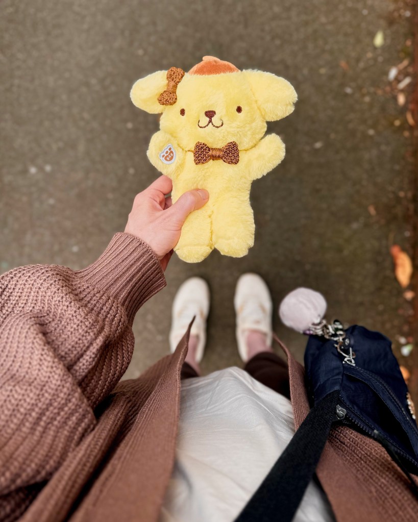 My son bought me Sticky Junior – he wanted to cheer me up. I had the larger Build-a-Bear Pompompurin but I didn’t bond with him, so I ended up giving him up for adoption to my son. So that I wasn’t left Stickyless, he bought me the mini one from the new Build-a-Bear drop.