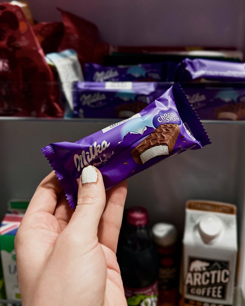 We got everything else we needed but then we came to the blessed fridge aisle that contains all the milky goodness. I got VERY distracted by thinking of the deliciousness of milka milk cakes and picked up two packets. So when it came to the caramel coffee my son wanted, I was in a bit of a milk based daze.