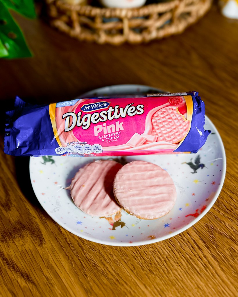 The Raspberry and Cream Digestives – And the reason I forgot my Biscoffs in Asda in the first place? A shiny, ridiculous distraction. There they were, sitting on the shelf: pink raspberry-and-cream digestive biscuits. My first reaction was disgust. Who on earth would buy pink digestives? They looked like they’d taste like cleaning chemicals or something 3D-printed out of plastic.