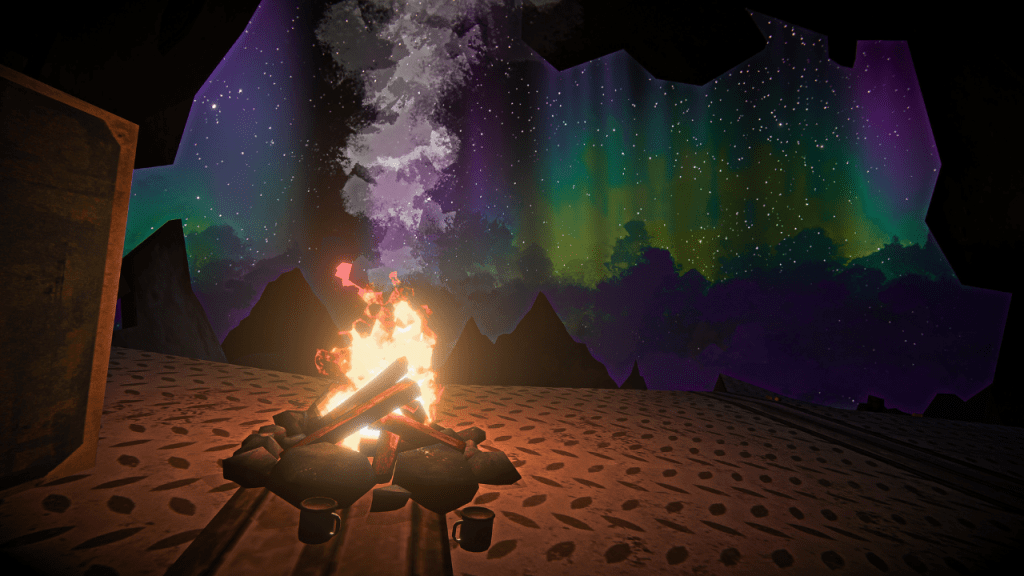I dodged a bear on the lower slopes. I dispatched the two surprise wolves at the top. And the loot smiled on me – snow pants and an expedition parka. I spent days up there, campfire burning inside the wreckage, sewing and repairing, watching an aurora. Peaceful. Safe. Accomplished.